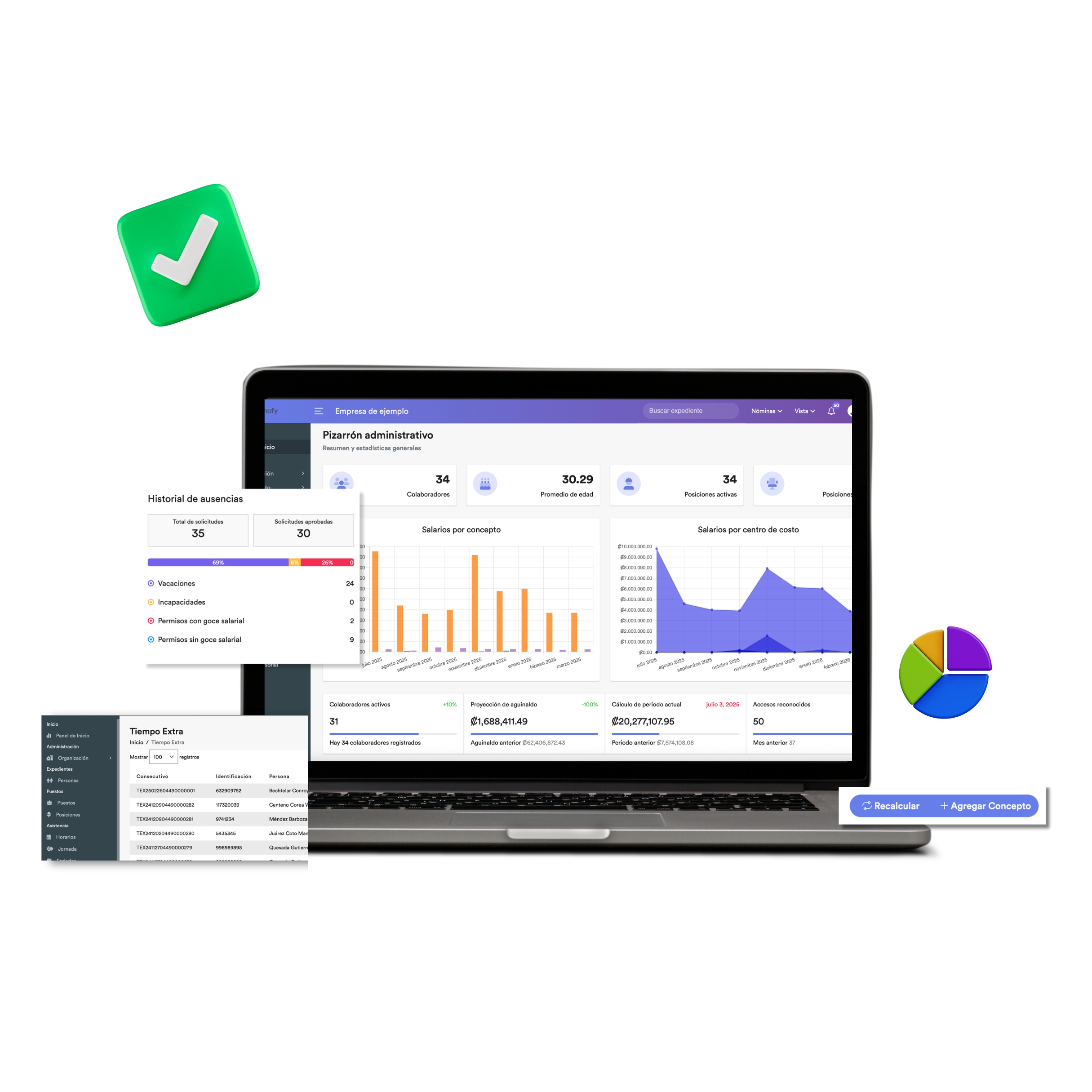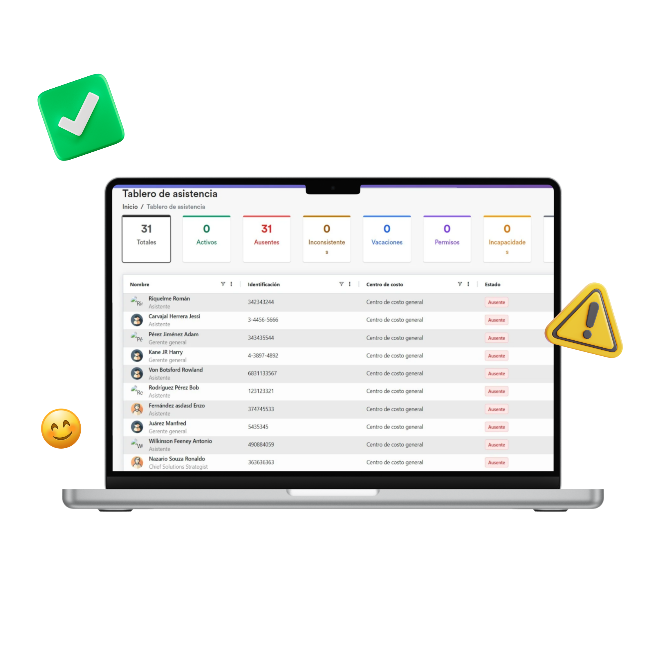 Accedé a tendencias de puntualidad, indicadores de cumplimiento y alertas tempranas de posibles problemas operativos, junto con una visión del nivel aproximado de felicidad corporativa por área o turno, todo en un solo panel.