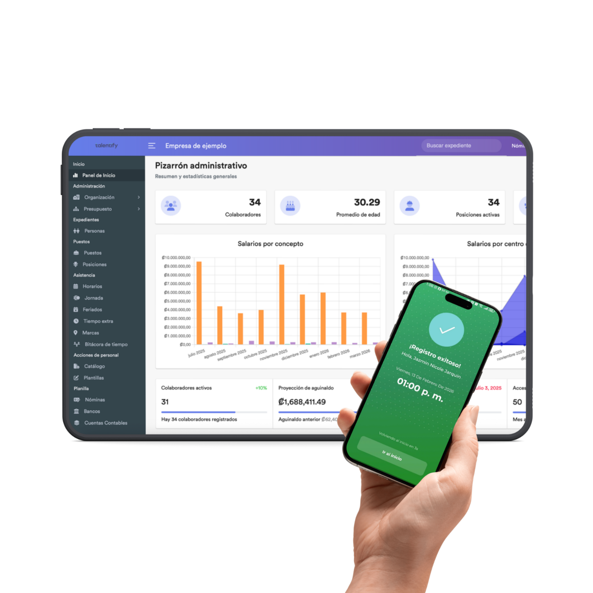 Si ya usás Talentify, el módulo Tempo se integra automáticamente, sin instalaciones ni procesos extra. Todo funciona sincronizado en tiempo real marcajes, validaciones con IA, reportes y asistencia lo que reduce errores, agiliza cierres de planilla y mantiene tu operación mucho más ordenada.